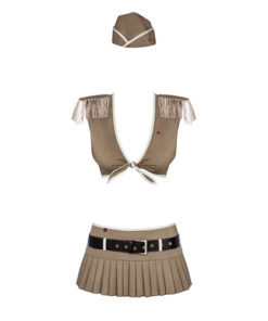 5-teiliges Soldatenkostüm mit Oberteil, Rock, Hut, String und Gürtel.