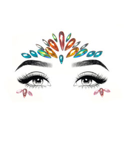 Klebender Gesichtsschmuck-Aufkleber. Einfach anzubringen; lösen Sie das Juwel von der Unterlage und platzieren Sie es an der gewünschten Stelle auf der Haut und üben Sie mittleren Druck aus. Sie brauchen keinen zusätzlichen Kleber. Geprüft und körperverträglich.