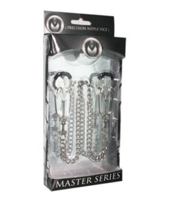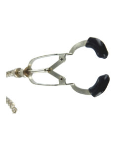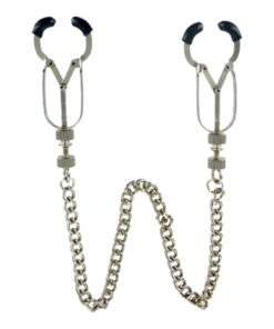 Diese Bauhaus Nippelklemme ist kräftig und besonders präzise. Mithilfe der jeweils an der Basis angebrachten Stellschrauben können Sie die beiden Klammern so eng einstellen, wie Sie möchten. Die Spitzen der Klammern sind mit Gummi umhüllt. Ihre Enden sind leicht gebogen und damit griffiger. Komplettiert wird dieses beherrschende Toy durch eine 30 cm lange Verbindungskette, die so besonders verlockend wirkt, wenn sie von den in den Klemmen gefangenen Nippeln Ihres Spielgefährten herunterhängt.Maße: Länge jeder Klammer 7,5 cm bis auf 1,25 cm zu öffnen Kettenlänge 30 cm.Material: Metall und GummiFarbe: Silber