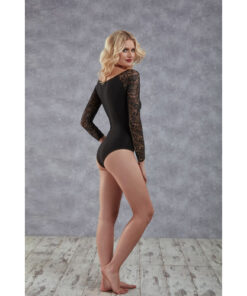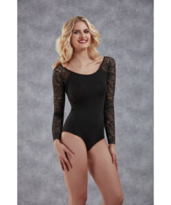 Body mit langen Spitzenärmeln – Schwarz