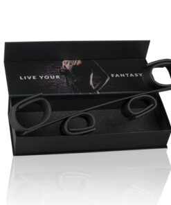 Mit dieser Bondage-Stange können Sie Ihre/n Devote/n sicher gefesselt lassen solange sie das wünschen. Die Hände Ihrer/Ihres Devoten werden an seine oder ihre Knöchel gefesselt, wodurch ein Entkommen unmöglich gemacht wird. Die Manschetten sind aus starkem Kunstleder und für eine komfortable Anwendung mit Schaumstoff gefüttert. Sie sind aufgrund der Klettverschlüsse leicht verstellbar. Die Bondagestange hat ein ein elegantes Design und ist aus haltbaren Materialien, so dass Sie sie noch lange genießen können.