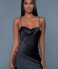 Brooklyn Neglige mit offenen Seiten – Schwarz