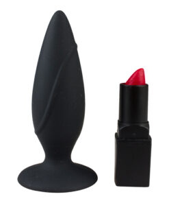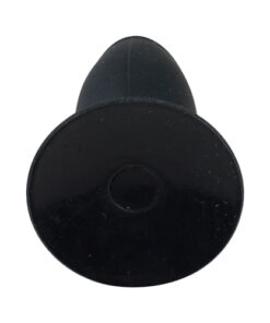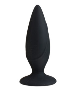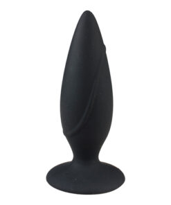 Schwarzer, konisch geformter Analplug mit Saugfuß. Gesamtlänge 9,7 cm, Einführtiefe ca. 8,5 cm. Ø 3,2 cm Material: Silikon.