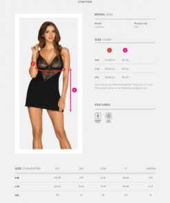 Fuehle dich in diesem wunderschoenen sexy Kleid mit Spitzen und verstellbaren Traegern feminin und selbstbewusst. Das dehnbare Material garantiert einen hohen Tragekomfort. Der passende Tanga vervollstaendigt diesen Look.Tipp: Sieh dir das letzte Foto mit Groessentabelle fuer die richtige Passform an.