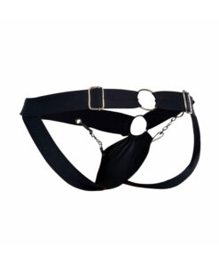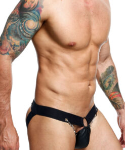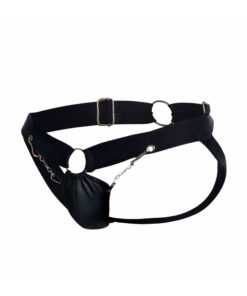 Der Chainlink Jockstrap ist aus robustem Kunstleder in schlichtem Schwarz gefertigt. Durch die minimale Abdeckung auf der Rückseite kann der Schweiß besser verdunsten, was dem Träger ein angenehmeres Tragegefühl verschafft. Eine Kettentasche auf der Vorderseite stützt den Penis, ohne an Sexappeal zu sparen, während breite Riemen auf den Hüften für ein stützendes Finish sorgen.