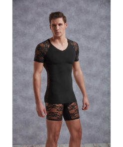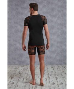 Shirt von Doréanse. Shirt aus Materialmix in Baumwoll-Qualität mit Lenzing Modal®. Weicher Tragekomfort mit antitranspiranter Wirkung. Mit V-Ausschnitt, Ärmeln und Seiten-Einsätzen aus Spitze.