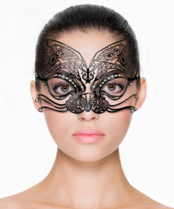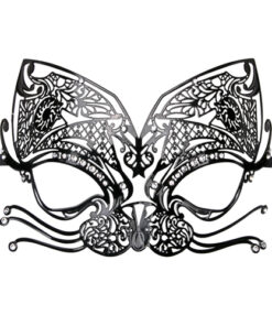 Mit dieser durchbrochenen venezianischen Maske von EasyToys wird Ihr Ausgehabend bestimmt zum Erfolg! Sie ist das ideale Accessoire für jedes Outfit vom Ballkleid zu sexy Dessous. Die Maske reicht recht hoch (bis zum Haaransatz) und hat einen katzenartigen Look. Mit den beiden schwarzen Bändchen können Sie die Maske an der Rückseite einfach binden. Oberhalb der Augen und an den Enden des Metalls befinden sich Strasssteinchen, die der Maske einen besonders anmutigen Touch verleihen.