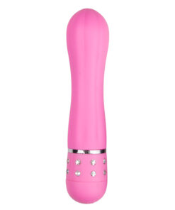 Dieser ansprechende Mini-Vibrator mit Rillen von EasyToys darf in Ihrer Kollektion nicht fehlen! Der Schaft ist mit vertikalen Rillen versehen, die für zusätzliche Stimulation sorgen. Die Spitze des Vibrators ist rund. Dank des kleinen Formats lässt sich der Vibrator einfach auf Reisen mitnehmen. Oder stecken Sie ihn in Ihre Tasche und tragen Sie ihn während Ihrer Alltagsbeschäftigungen mit sich mit. Die Strasssteinchen an der Unterseite und die ansprechende pinkfarbene Farbgebung verleihen ihm eine auffällige und heitere Optik. Die Vibrationsstärke können Sie mit dem Drehschalter an der Unterseite einfach selbst anpassen.