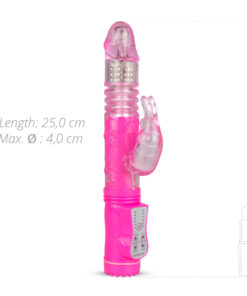 Mit diesem rosa Hasen-Vibrator kannst du sicher sein, dass du endlos genießt. Mit seinen 6 verschiedenen Vibrationseinstellungen und 6 Rotationseinstellungen wird jede Stelle stimuliert. Bestimme einfach die Einstellungen mit den Druckknöpfen auf dem Bedienungsfeld und wähle deine liebsten Einstellungen. Neben vibrieren und rotieren macht dieser EasyToys Vibrator auch eine stoßende Bewegung. Also bist du auf der Suche nach einem kräftigen Vibrator für lebensechtes Vergnügen? Dann nimm den EasyToys Stoßenden Hasen Vibrator!