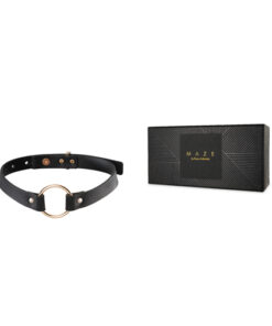 Mit den Bondage-Accessoires aus der Kollektion von Maze verleihen Sie jedem Look eine aufregende Note. Das durch BDSM inspirierte Halsband ist aus hochwertigem PU-Leder gefertigt. Es hat das Aussehen von echtem Leder, ist aber absolut vegan. Der verstellbare Halskragen hat einen goldfarbenen Metallring, an dem Sie Manschetten und eine Leine befestigen können. Tragen Sie das Halsband in Kombination mit verführerischen Kleidung oder Dessous und kreieren die verführerischsten Looks. Umfang des Halsbandes: 31 cm bis 41 cm