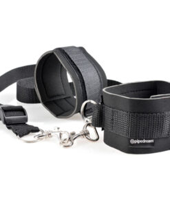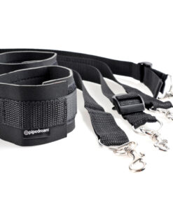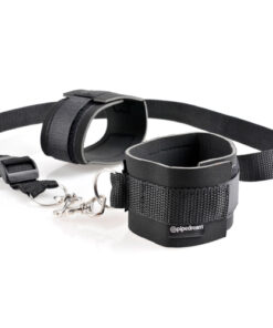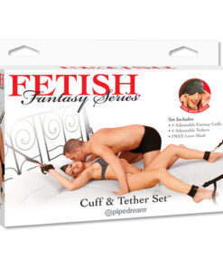 Fetish Fantasy Cuff & Tether SetSchön verarbeitetes Fessel-Set bestehend aus vier Handfesseln mit jeweils einem Befestigungsriemen. Die Fesseln sind einfach durch Klettverschluss zu schließen (aber durch denjenigen, der gebunden ist, nicht zu öffnen) und haben eine weiche Fütterung. Ideales Set für Anfänger, aber natürlich genauso gut für Profis. Vieles ist möglich mit diesem Set. Das Set enthält: vier verstellbare Phantasiefesseln, vier verstellbare Riemen, eine Augenbinde. Alles mit Karabinerhaken.