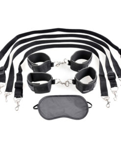 Fetish Fantasy Cuff & Tether SetSchön verarbeitetes Fessel-Set bestehend aus vier Handfesseln mit jeweils einem Befestigungsriemen. Die Fesseln sind einfach durch Klettverschluss zu schließen (aber durch denjenigen, der gebunden ist, nicht zu öffnen) und haben eine weiche Fütterung. Ideales Set für Anfänger, aber natürlich genauso gut für Profis. Vieles ist möglich mit diesem Set. Das Set enthält: vier verstellbare Phantasiefesseln, vier verstellbare Riemen, eine Augenbinde. Alles mit Karabinerhaken.