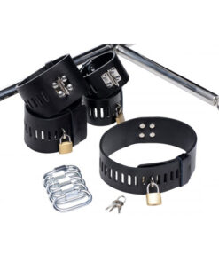 Bestrafen und erfreuen Sie Ihren Sub in dieser hinterhältigen unverwechselbaren Haltung in dem Bodenpranger! Binden Sie Ihren Sub am Hals, an den Handgelenken und an den Knöcheln fest, während sie von einem realistischen Dildo penetriert wird. Alle Teile dieser bemerkenswerten Vorrichtung sind verstellbar, so können Sie die Basisleiste verlängern, die Höhe des Dildos und des Halsbands anpassen und die Position Ihrer Geliebten an Handgelenken und Knöcheln verändern. Die Konstruktion könnte nicht einfacher sein, nur mit einfachen Schraubverbindungen. Die luxuriösen, strapazierfähigen Manschetten sind alle mit einer Verschlussklammer versehen, damit sie nicht entkommen kann, und einem D-Ring, um sie mit dem Pranger zu verbinden oder um sie evtl. in anderen Bondageszenen zu verwenden!