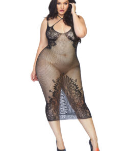 Nahtloses Netz- und Spitzenkleid mit doppeltem Träger und künstlicher Spitze am Rücken.