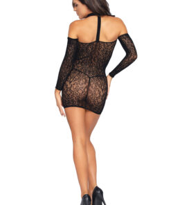 Langärmeliges Neckholder-Minikleid aus Spitze.