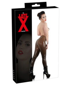 Transparent-rauchfarbene Latex-Strumpfhose, auf flacher Form getaucht (Stärke 0,4 mm). Hergestellt unter der Verwendung von Naturkautschuklatex, der Allergien verursachen kann.