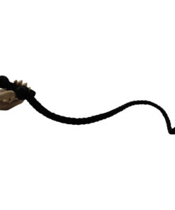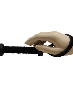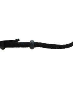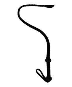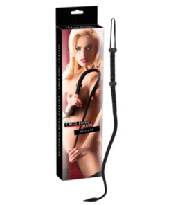 Schwarze geflochtene Peitsche aus hochwertigem Veloursleder mit verstärktem Griff und Aufhängeriemen. Gesamtlänge 90 cm. Material: Spaltleder.