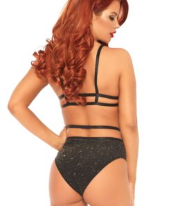 2 Stück Schimmernder, blickdichter Lurex-Käfig-Träger-BH und passender trägerloser brasilianischer Unterteil.