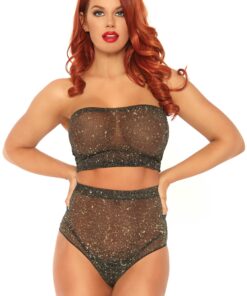 2 Stück Lurex schimmernden Spandex trägerlosen Bandeau-Top und passende hohe Taille brasilianischen Rücken Höschen.