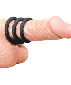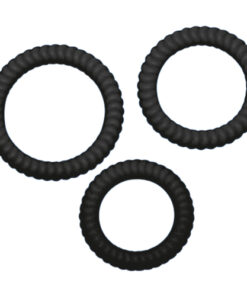 Das Lust-Trio für imposante Erektionen! 3 Penisringe mit Rillenstruktur mit unterschiedlichen Durchmessern (2,6, 3,0 und 3,5 cm). Auch ideal zur Hoden-Schnürung. Einzeln oder in Kombination zu verwenden. Material: Silikon, phthalatfrei gemäß EU-Verordnung 1907/2006/EC.