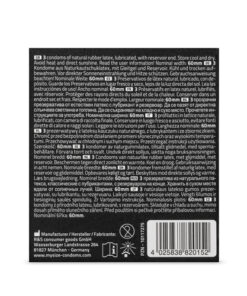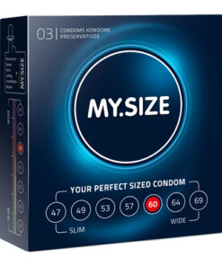 Die Kondome der deutschen Marke MySize werden in verschiedenen Größen hergestellt, so findet man immer passgenaue Kondome. Das Tragen eines gut sitzenden Kondoms ist nicht nur angenehmer, es erhöht auch die Sicherheit bei der Anwendung.Diese Kondome mit einer Weite von 60 mm sind größere Kondome mit folgenden Abmessungen:Nennweite: 60 mmFür Penis-Umfang: 12 – 12,9 cmLänge: 195 mmMerkmale der Kondome:Geschmack: neutralGleitmittel: normalFarbe: transparentBeschaffenheit: glattGröße: größerNennweite: 60 mmDicke: normalStück in der Verpackung: 3Marke: MySize