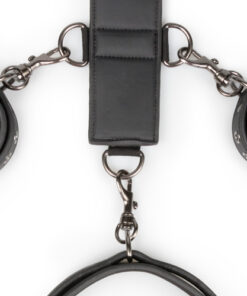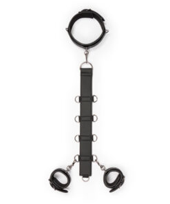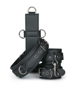 Zeigen Sie Ihrer/Ihrem Devoten mit diesem Bondage-Set, wer das Sagen hat! Das Set besteht aus einem Geschirrriemen, Handschellen und einem Halsband. Sowohl die Handschellen als auch das Halsband sind für eine perfekte Passform leicht einstellbar. Das robuste Kunstleder ist mit Schaum gefüttert, um ein Aufkratzen der Haut zu vermeiden und eine komfortable Anwendung sicherzustellen. Der Bondageriemen ist mit neun kleinen D-Ringen und einem großen D-Ring versehen. Die Handschellen und das Halsband haben Klippverschlüsse, so dass Sie diese leicht an dem Geschirr anbringen können. Aufgrund der Länge des Riemens und der vielen D-Ringe können Sie Ihre eigenen Bondage-Spiel kreieren und das Set ganz wie gewünscht verwenden.