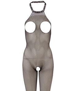 Sexy Einteiler mit erregenden Öffnungen an Busen und Scham. Im Rücken tief ausgeschnitten. Das hochelastische, schwarze Soft-Netz-Material schmiegt sich kurvengenau an und ist kaum spürbar auf der Haut. Mit Fuß. 100% Polyamid.