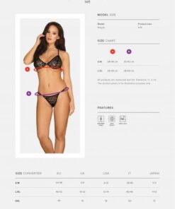 Mit diesem sexy 2-teiligen BH-Set wirst du definitiv die ganze Aufmerksamkeit im Schlafzimmer auf dich ziehen. Dieses Set ist mit einem unwiderstehlichen Leopardenmuster versehen und mit goldfarbenen Ketten verziert. Das Oberteil hat einen verstellbaren Neckholder-Verschluss und verstellbare Traeger. Die Cups sind ungefuettert und buegellos. Der passende Tanga vervollstaendigt den Look. Das dehnbare Material garantiert einen hohen Tragekomfort.Tipp: Sieh dir das letzte Foto mit Groessentabelle fuer die richtige Passform an.