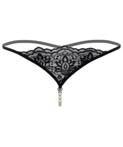 Perlenbesetzter G-String. Ultra sexy String mit Spitzeneinsatz auf der Vorderseite und Kunstperlen im Zwickel.