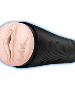 Der Alexis Fawx Masturbator hat einen abgeformten Abdruck von Karmas Vagina, das ein realistisches Gefühl und Aussehen vermittelt. Die beeindruckende Struktur garantiert eine erstaunliche Penetration. Für eine optimale Stimulation wird der Masturbator mit 2 Motoren geliefert und verfügt über 8 Vibrationseinstellungen. Die Vibrationen können einfach mit der an der Oberseite liegenden Taste ein- und ausgeschaltet werden. Die Taste kann auch zum Ändern der Vibrationseinstellung verwendet werden. Tipp: Nehmen Sie die Hülle aus dem Gehäuse und erwärmen Sie sie in warmem Wasser, um ein erstaunliches Gefühl zu erzeugen. Sie können die Enge der Hülle mit der Taste an der Unterseite einstellen. Schrauben Sie die Kappe ab, um sie zu lösen, und ziehen Sie sie fest, um eine Vakuumwirkung zu erzielen. Das robuste Gehäuse ist diskret verpackt und hat einen guten Griff, wodurch der Stroker leicht zu handhaben ist.Jeder Stroker hat an der Kappe eine praktische Funktion. Wenn Sie die Kappe abnehmen, können Sie sie umdrehen, wodurch sie zu einem Smartphone- oder Tablet-Halter wird. Auf diese Weise können Sie die Stimulation genießen, die der Masturbator neben Video-Audio-Inhalten bietet.Laden Sie den Stroker nach Gebrauch mit dem mitgelieferten USB-Ladekabel auf. Die abnehmbare Hülle lässt sich leicht mit Sexspielzeugreiniger und warmem Wasser reinigen. Um eine lange Lebensdauer des Produkts zu gewährleisten, lassen Sie die Hülle immer vollständig trocknen und tragen dann Puder auf. Verwenden Sie kein Gleitmittel auf Silikonbasis, da dies das Material beschädigen kann. Das gesamte Set kann in der mitgelieferten Spielzeugtasche aufbewahrt werden.