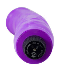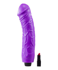 Queeny Love Giant LoverBiegsamer Lila Riesen-Vibrator aus Jelly, mit ausgeprägter Eichel und Äderung. Gesamtlänge ca. 38 cm, Ø ca. 6 – 7 cm. Vibration stufenlos regelbar.
