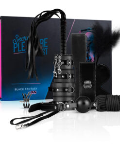 Verwöhnen Sie sich selbst und Ihren Partner mit dem Inhalt dieser aufregenden BDSM Set. In diesem 10-teiligen Set finden Sie verschiedene Bondage- und SM-Produkte für eine aufregende Nacht im Schlafzimmer. Dieses Set ist für Paare, die sich für BDSM interessieren, aber noch nicht viel Erfahrung damit haben, geeignet. Diese Box beinhaltet ein Bondage-Seil (10 Meter), einem Ballknebel, Handschellen, Fußmanschette, eine Augenmaske, ein Mini-Paddel, ein Flogger, etwas zum Kitzeln, ein Halsband mit Leine und einen Satz Nippelklemmen. Die Manschetten sowie der Kragen und der Ballknebel sind verstellbar.