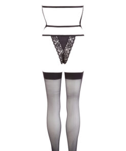 Strapshemd, String ouvert und Strümpfe. Schwarz. 100% Polyamid.