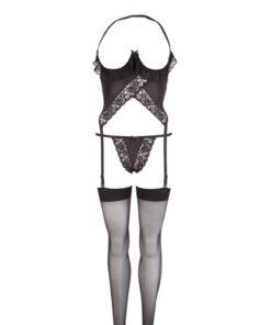 Strapshemd, String ouvert und Strümpfe. Schwarz. 100% Polyamid.