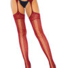 Doppelte Netzstrümpfe mit Spitzenabschluss und Strumpfgürtel an der Taille.