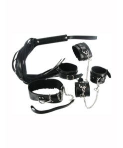 Fesseln Sie Ihre/n Liebste/n in sexy Schwarz und unterwerfen Sie ihn oder sie allen Aktionen, die Ihnen einfallen! Denn eines ist sicher: Mit diesem Bondage-Set in Schwarz haben Sie die Kontrolle! Das Halsband, die Peitsche, die Handgelenk- und Fußfesseln halten Ihre/n Sub vollständig in Schach. Der robuste Kragen und die Manschetten sind mit schwarzem Kunstpelz verkleidet, sodass Ihr/e Partner/in während seiner/ihrer Unterwerfung ein luxuriöses Gefühl von weichem Plüsch genießen kann. Beide Manschetten-Sets sind mit robusten und abnehmbaren Schlössern versehen, sodass Sie diese auf Wunsch verbinden können. Die D-Ringe können Sie aber auch für noch kreativere Bondage-Szenarien verwenden. Und dann noch die Peitsche. Damit bestrafen Sie schnell und effektiv jede Art von Ungehorsam.Merkmale:Maße: Kragen: Passt einem Halsumfang von 40,6 cm bis 50,8 cm. Länge des Gängelbands 55,9 cm, Länge des Griffs 21, 6 cm. Handgelenkfesseln: Passen einem Handgelenkumfang von 14 cm bis 24,1 cm. Anschlusskette 17,8 cm. Fußfesseln: Passen einem Knöchelumfang von 20,3 cm bis 30,5 cm. Verbindungskette 49,5 cm lang. Länge der Peitsche: 83,8 cm (einschließlich Schlaufe des Griffs).Material: Kunstleder, Kunstpelz, Metall.Farbe: schwarz