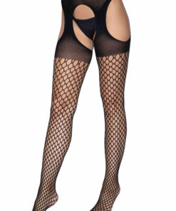 Ovale Netzstrumpfhose mit blickdichtem Oberteil.