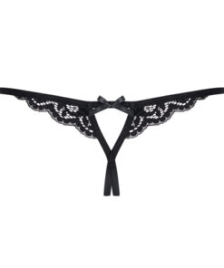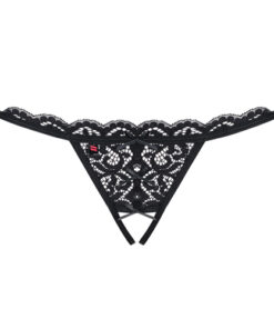 Durchsichtiger Spitzentanga mit offenem Intimbereich.