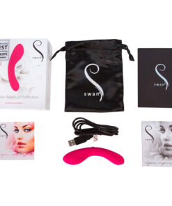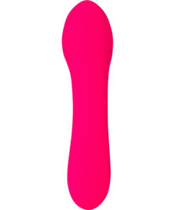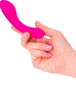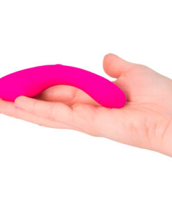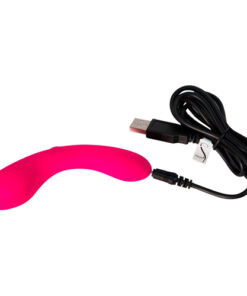 Gebogener pinkfarbener Vibrator mit einem dickeren und einem dünneren Ende. 7 Modi. Mit Tastensperre. Wasserfest. Inklusive elegantem Aufbewahrungsbeutel. Wiederaufladbar per beiliegendem USB-Kabel. Gesamtlänge 12,1 cm, Ø 2,4-3,2 cm. Material: Silikon, phthalatfrei gemäß EU-Verordnung 1907/2006/EC. Ladezeit 2h, Laufzeit 2h.