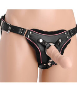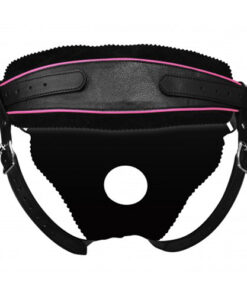 Präsentieren Sie sich in diesem Tief ausgeschnittenen Harness aus Leder mit Dildoring sowohl von Ihrer modernen als auch von Ihrer dominanten Seite. Die pinkfarbenen Akzente sorgen für einen modischen Look. Der Harness entblößt Ihren Po und durch den Ring an der Vorderseite kann ein passender Dildo einfach und geschmeidig hinein gleiten. Der Tief ausgeschnittene Harness aus Leder mit Dildoring ist mit Schließen an den Hüften und hintersten Bändchen für eine enge und dennoch komfortable Passform vollständig verstellbar. Die breite und weiche Rückseite bietet zusätzliche Unterstützung. Mit einem der beiden Ringe aus Stahl können Sie Ihren Lieblingsdildo hinzufügen und Ihre/n Partner/in ordentlich verwöhnen. Merkmale des Tief ausgeschnittenen Harness aus Leder mit Dildoring:Material: Leder, MetallFarbe: schwarz mit pinkfarbenen Akzenten Umfang: 109,2 cm an der weitesten StelleDurchmesser des Rings: geeignet für Dildos bis 4,2 cm Durchmesser Besonderheiten: passende Dildos werden separat verkauft