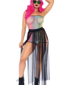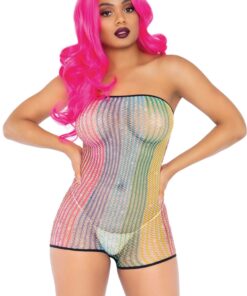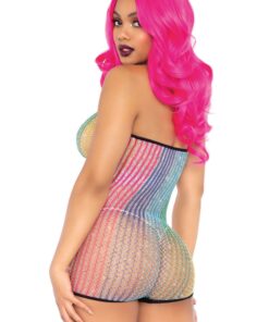 Trägerloser Strampler aus Lurex-Regenbogennetz.