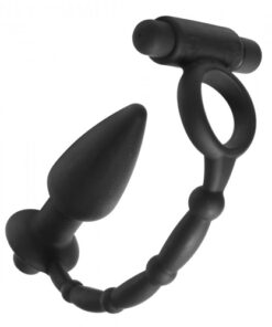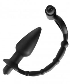Genießen Sie mit diesem vibrierenden Penisring mit Analplug aus Silikon doppelt. Dieser schwarze Penisring sorgt nicht nur für eine länger anhaltende Erektion, sondern stimuliert gleichzeitig auch den Anus. Dieser Penisring ist mit zwei unabhängig voneinander vibrierenden Kugelvibratoren ausgestattet einem beim Penisring und einem beim Analplug. Wenn Sie dieses Spielzeug unter der Dusche genießen möchten, ist das auch kein Problem – es ist nämlich spritzwassergeschützt!Merkmale:- Gesamtlänge: 36 cm- Einführtiefe: 9 cm- Durchmesser: 4 cm- Material: Silikon, ABS Kunststoff- Farbe: schwarz- Energieversorgung: 2 x AAA Batterien (nicht im Lieferumfang enthalten)- Weichmacherfrei: ja- Wasserfest: spritzwasserdicht